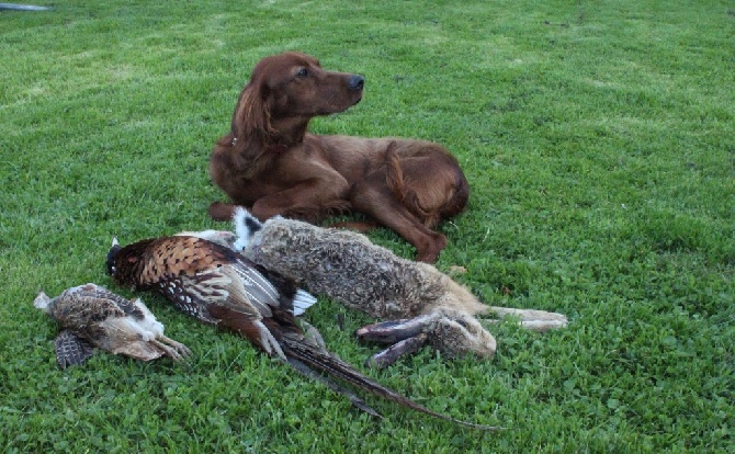 Nous avons eu des nouvelles de Lady elle fait le bonheur tant à la maison qu'à la chasse,nous sommes super content!!! En photo avec son premier trophée à sa premi&egrav...